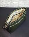 This bag has no exposed raw edges and does not use bias tape. It is turned through an opening left at the bottom of the lining, then the opening in the lining panels is closed through the opening in the interior zipper pocket. This pattern is suitable for most domestic sewing machine.