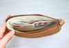 The Neo Crossbody Wallet has no exposed raw edges and does not use bias tape. It is turned through an opening in the interior zipper pocket.